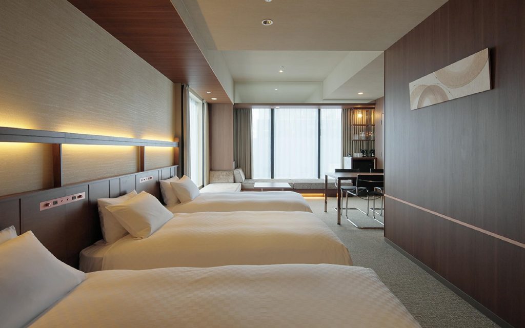 【客室設備】禁煙、無料高品質Wi-Fi(5GHz)、テレビ(ネット対応)、小上がりソファ、ローテーブル、冷蔵庫、洗い場付きバスルーム・トイレ・洗面台(セパレート)、館内着、スリッパ