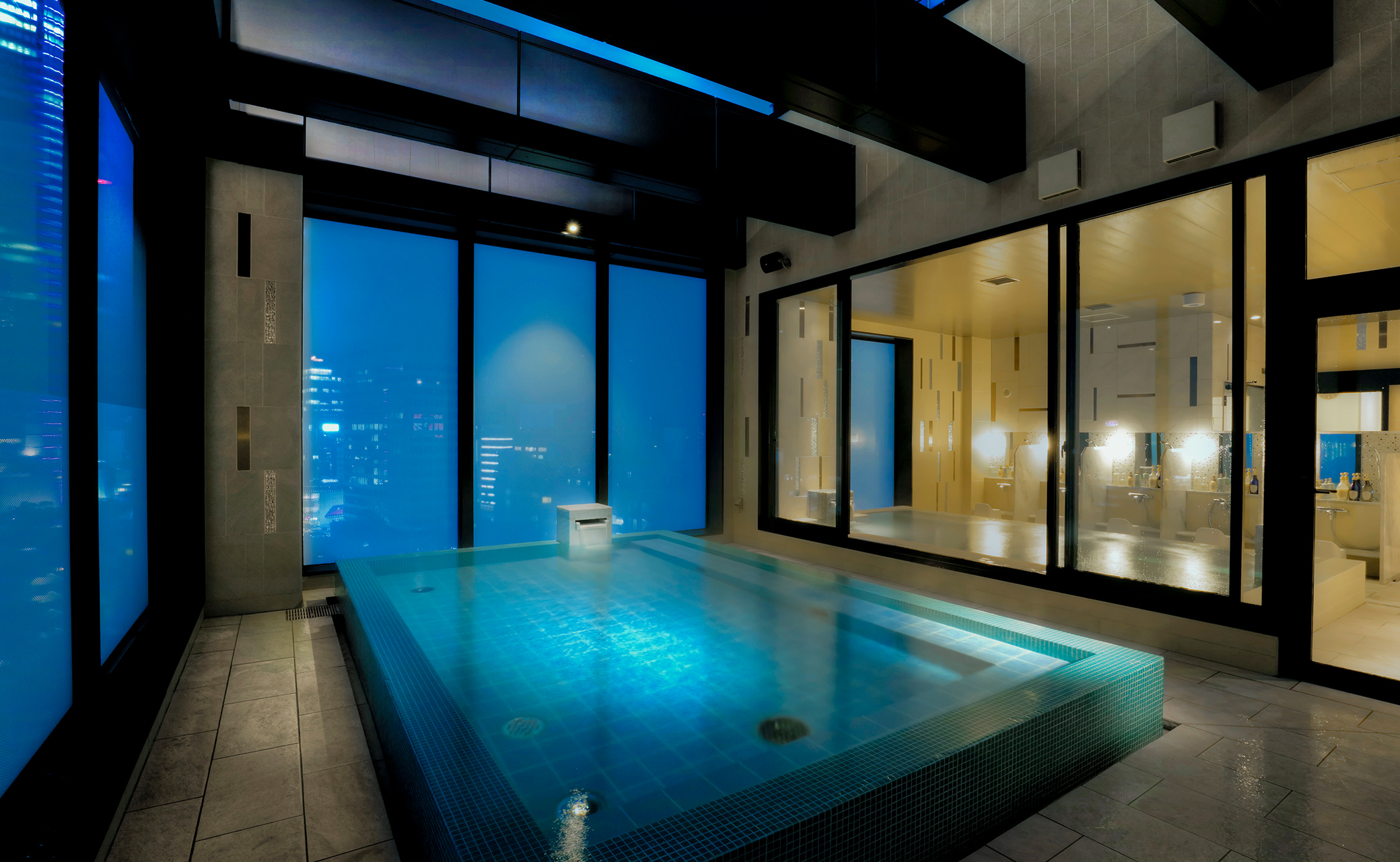 大都会を見下ろす露天は、ラグジュアリーな雰囲気。男湯からは東京タワー、女湯からは六本木ヒルズを眺められ、夜景の美しさは格別です。吹き抜き構造となっているため、開放感も十分です。