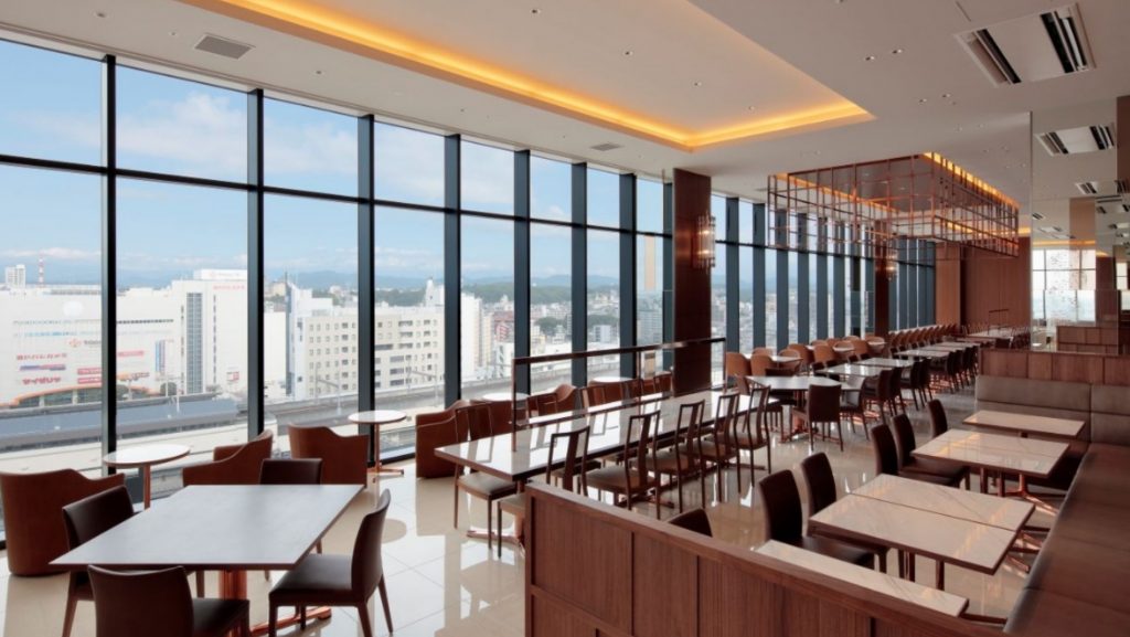 市街を見渡せる開放的なスカイラウンジで、手づくりにこだわった朝食をご用意しております