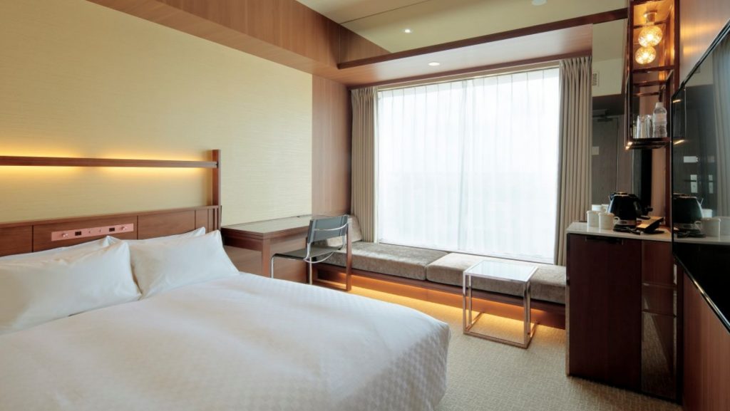 【客室設備】禁煙、無料高品質Wi-Fi(5GHz)、テレビ(ネット対応)、小上がりソファ、デスク、サイドテーブル、冷蔵庫、ユニットバス、館内着、スリッパ